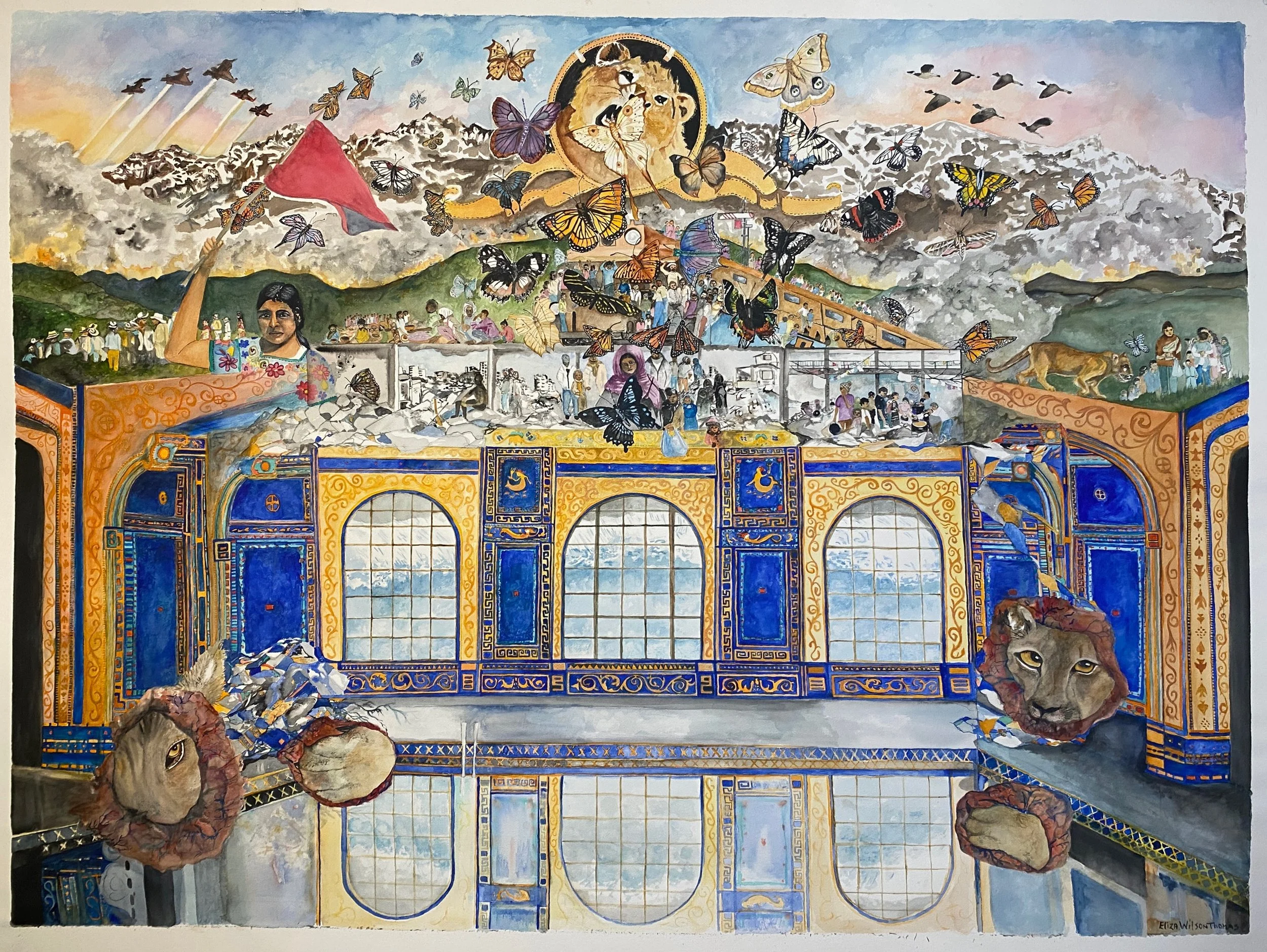 Red Flag In The Lions Den Watercolor on Paper 2025 H 47 x W 62